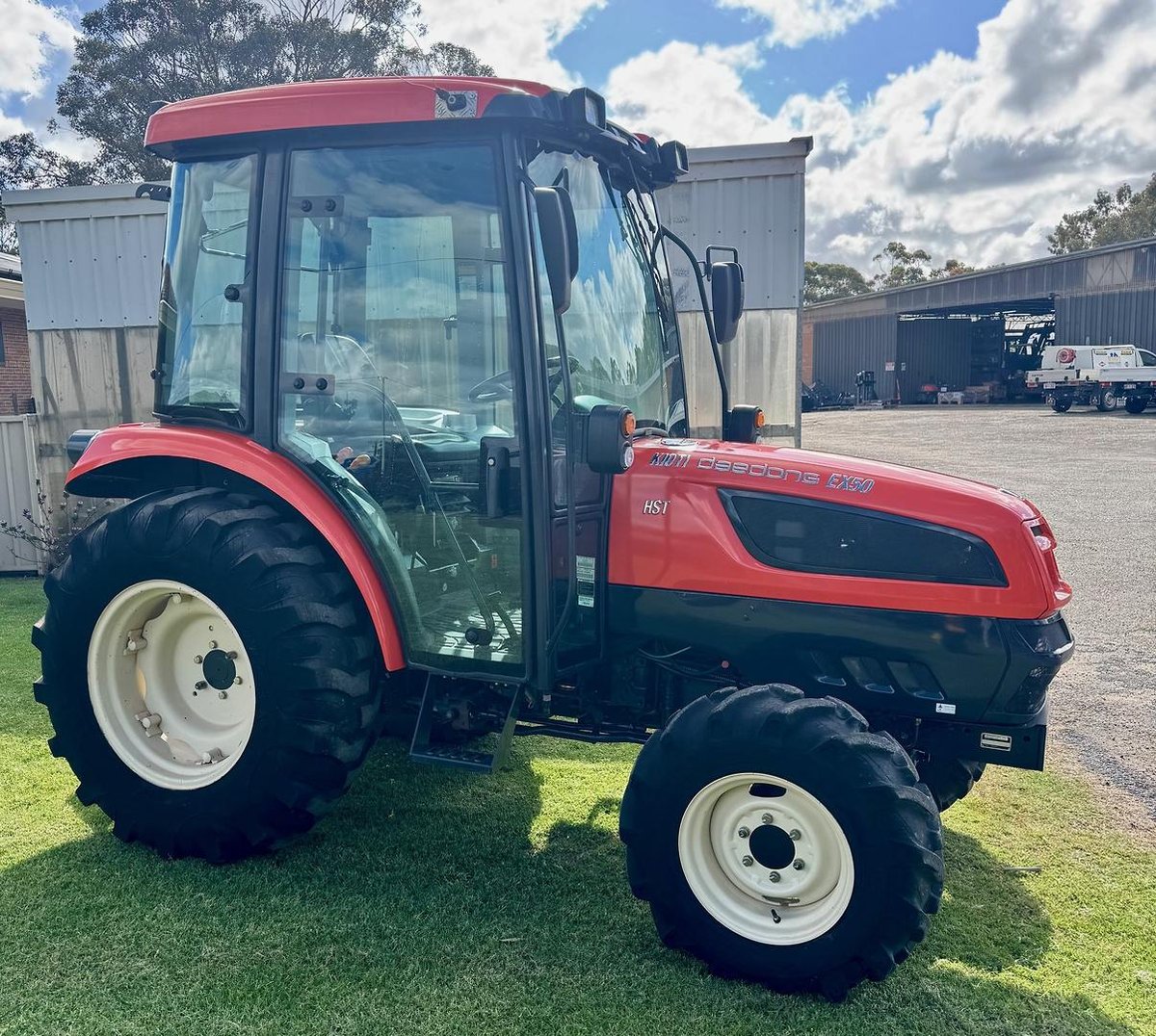 Kioti Daedong EX50 CAB tractor, in great condition rated at 50hp with a easy to drive 3 speed hydrostatic transmission, rear three-point linkage & PTO, this tractor is ready to get to work.